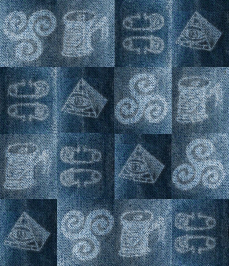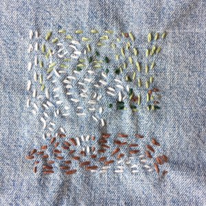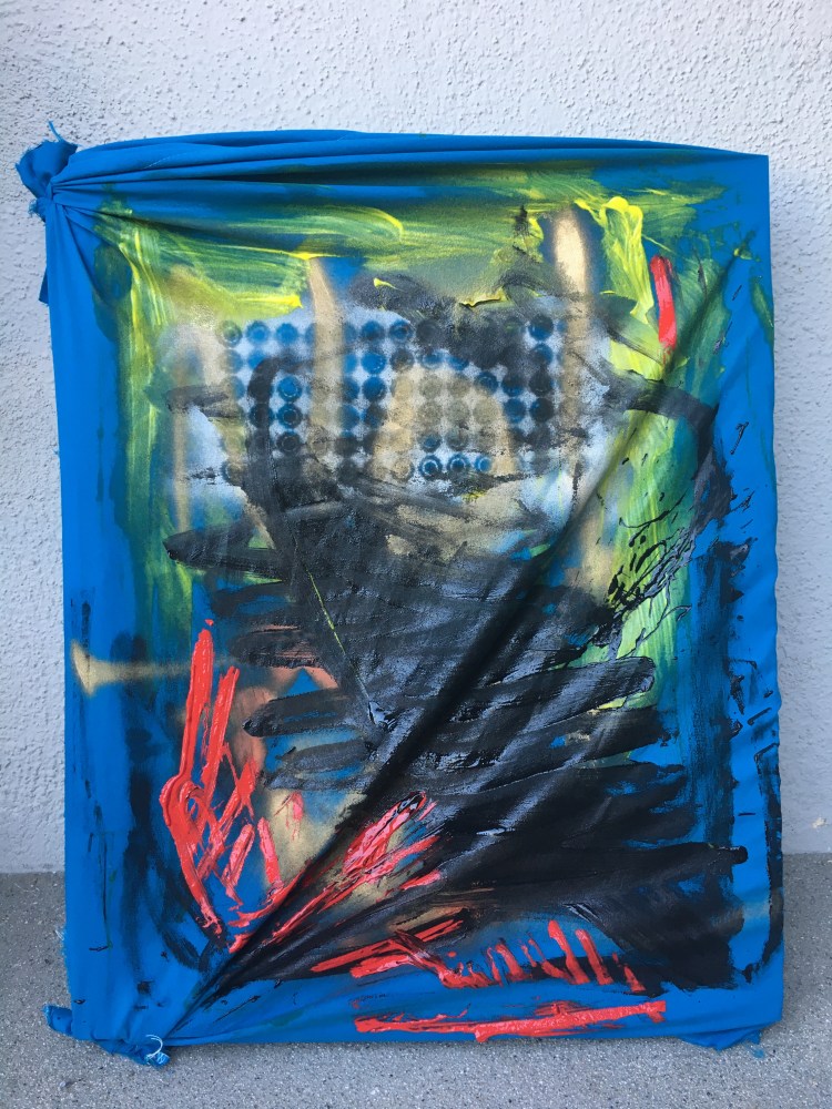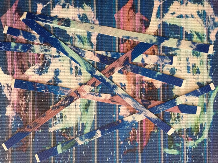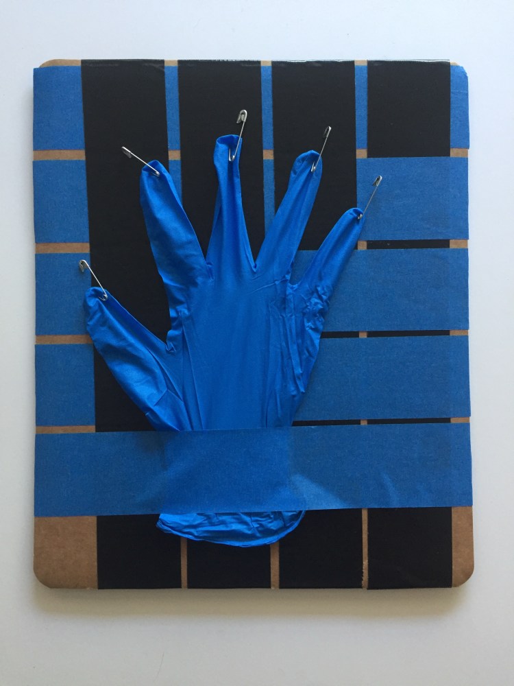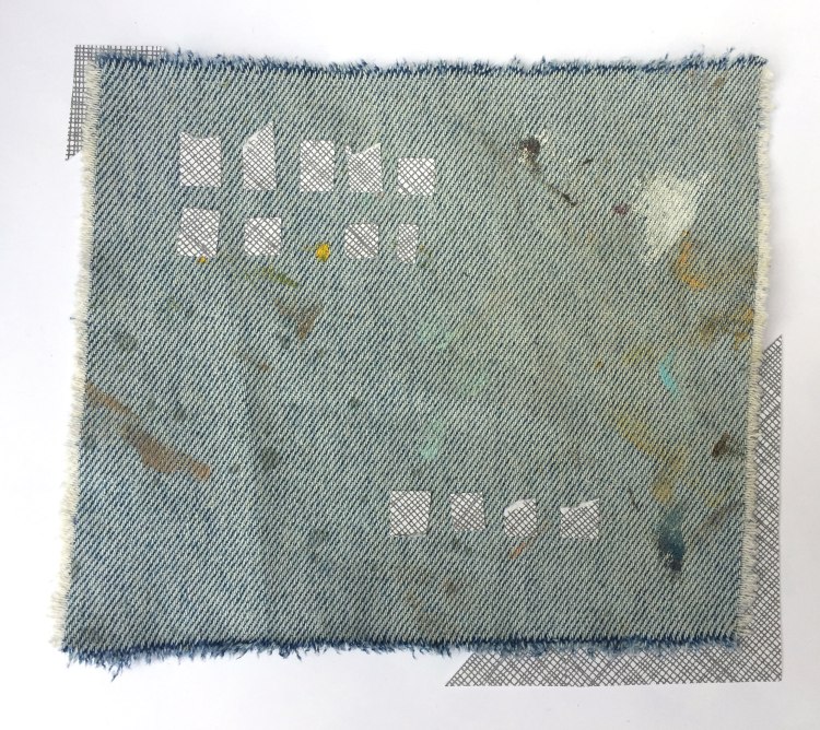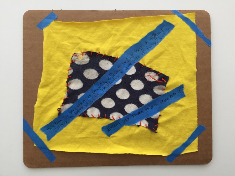 Anne M. Bray, “Untitled”, fabric, thread, blue painters tape on cardboard