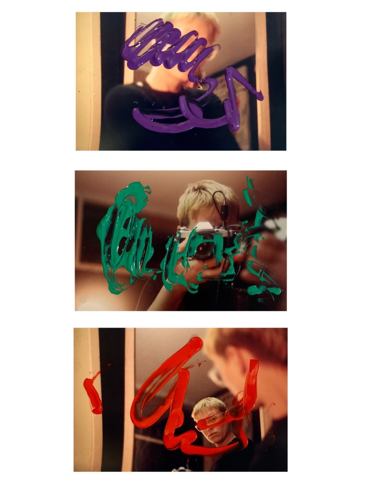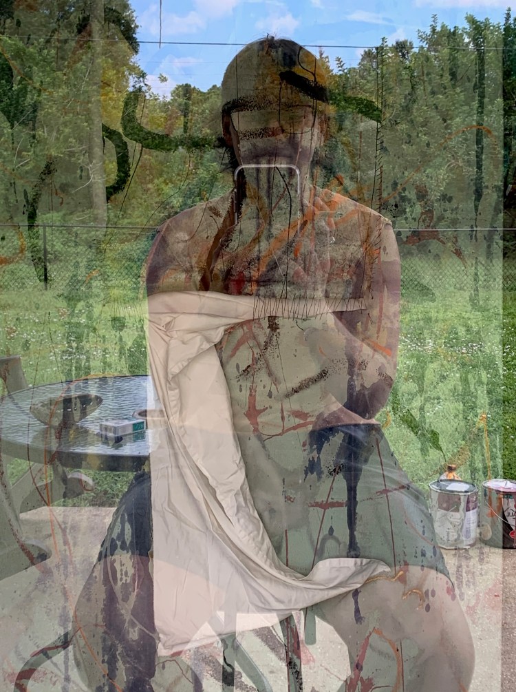 Kayla Cloonan, “Self Portrait with Drawing”, digital photography edited on iPhone