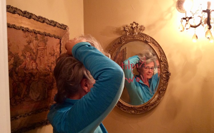 Misty Mawn, “sometimes it’s hard to see”, mixed media on paper “11 x 14”